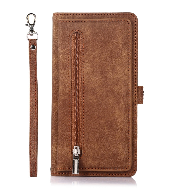 Funda para iPhone 11 con Cremallera y Ranura para Tarjeta Hebilla Monedero de Cuero (Marrón)