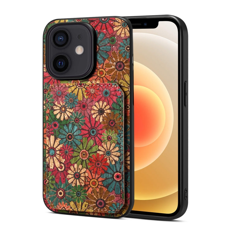 Funda para iPhone 12 Magnética con Bolso de Tarjeta de Cuero Retro (Negro)