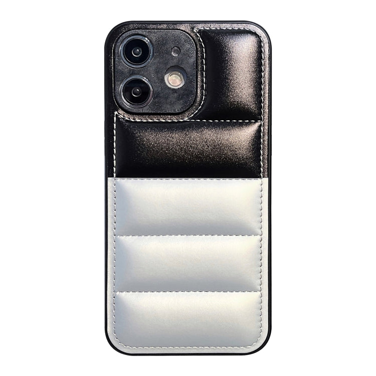Funda para Teléfono iPhone 12 Chaqueta de Plumón Bloques de Color (Negro Plateado)
