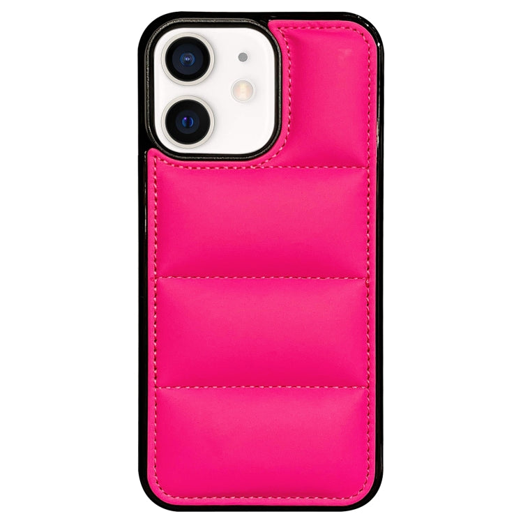 Funda para Teléfono iPhone 12 con Airbag de Edredón y Agujero Grande (Rojo Rosa)