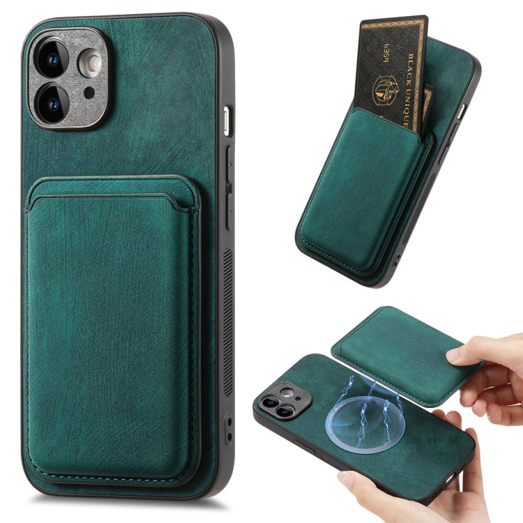 Funda magnética para teléfono iPhone 12 con bolsa de tarjeta de cuero retro (Verde)