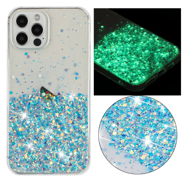 Funda para iPhone 12 Pro Max TPU con Polvo de Brillo Noctilucente y Marco Transparente (Azul)