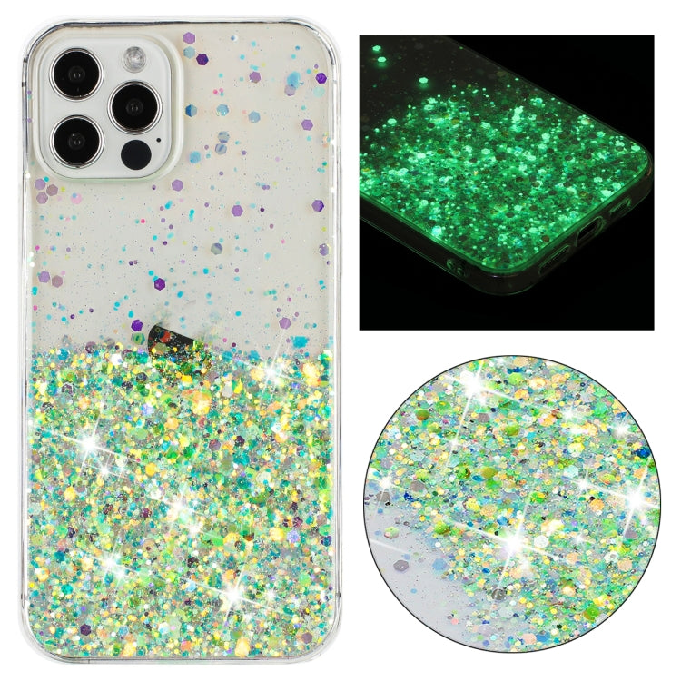 Funda para iPhone 12 Pro Max TPU con Polvo de Brillo Noctilucente y Marco Transparente (Verde)