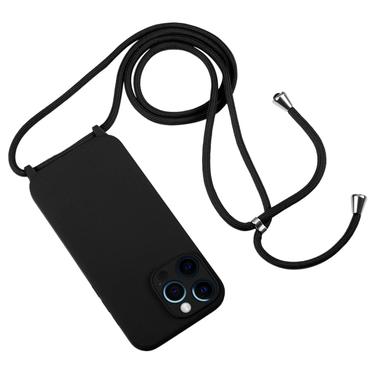 Funda de Silicona Líquida para iPhone 12 Pro Max Crossbody Lanyard (Negro)