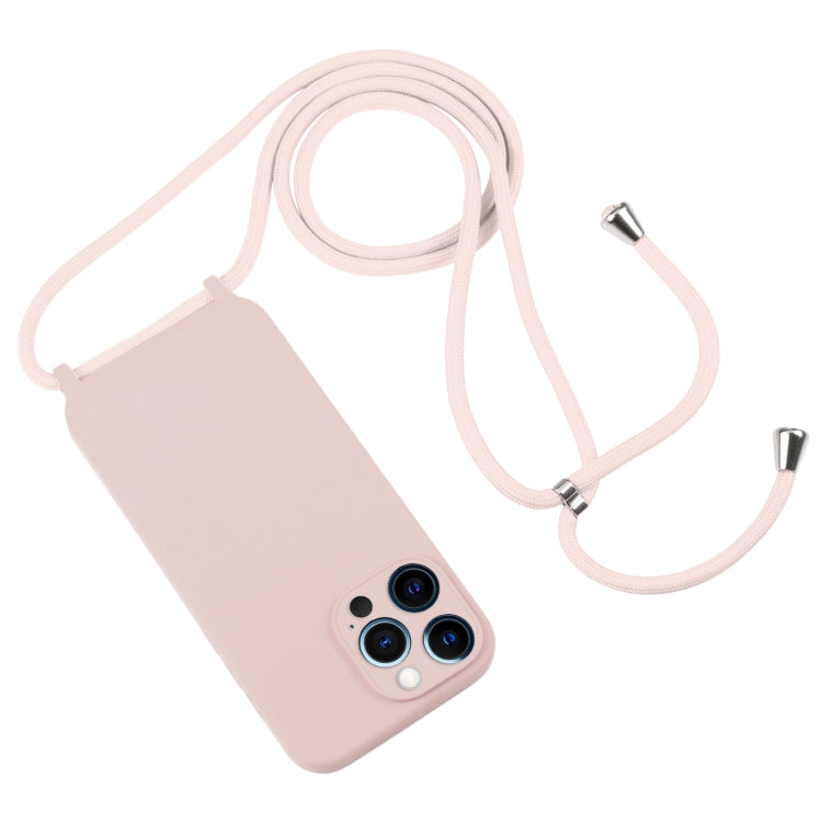 Funda de Silicona Líquida para iPhone 12 Pro Max Crossbody Lanyard (Rosa)