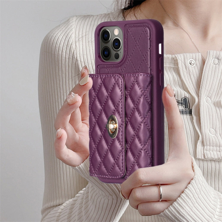 Funda de Cuero para iPhone 12 Pro Max Cartera Rombico con Hebilla de Metal Vertical (Púrpura)