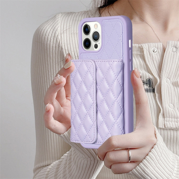Funda para iPhone 12 Pro Max Vertical Wallet Rhombic Leather Phone Case (Púrpura)
