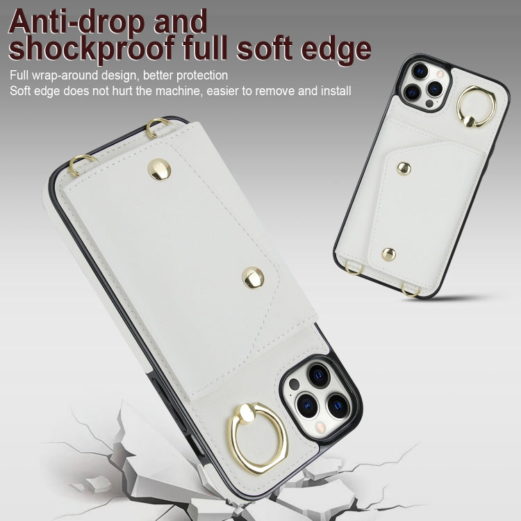 Funda para Teléfono iPhone 12 Pro Max Rhombic Texture Card Bag con Cordón Largo (Blanco)