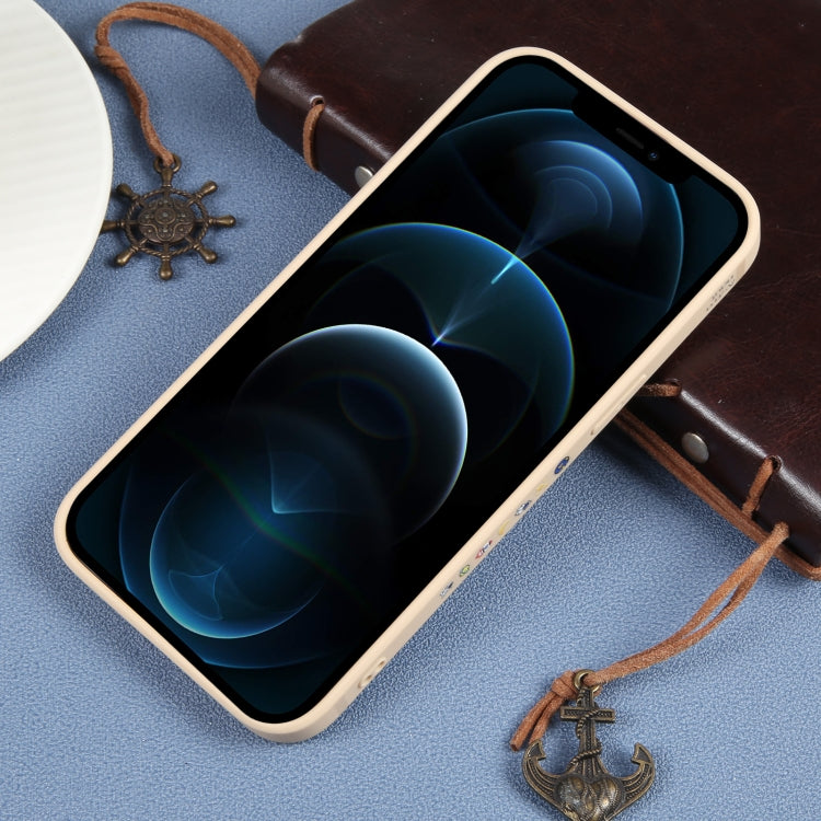 Estuche de Teléfono para iPhone 12 Pro Max Cat de Cuero con Patrón de Relieve y Cordón (Beige)