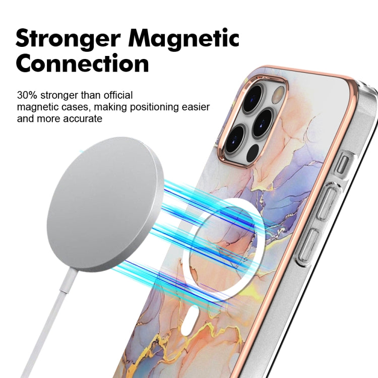 For iPhone 12 Pro Max Marble Pattern Dual-side IMD Magsafe TPU Phone Case (Purple 002)