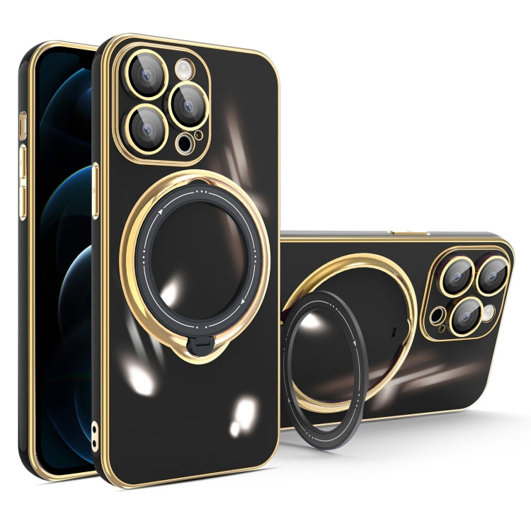 For iPhone 12 Pro Max Multifunction Electroplating MagSafe Phone Case with Holder(Black)