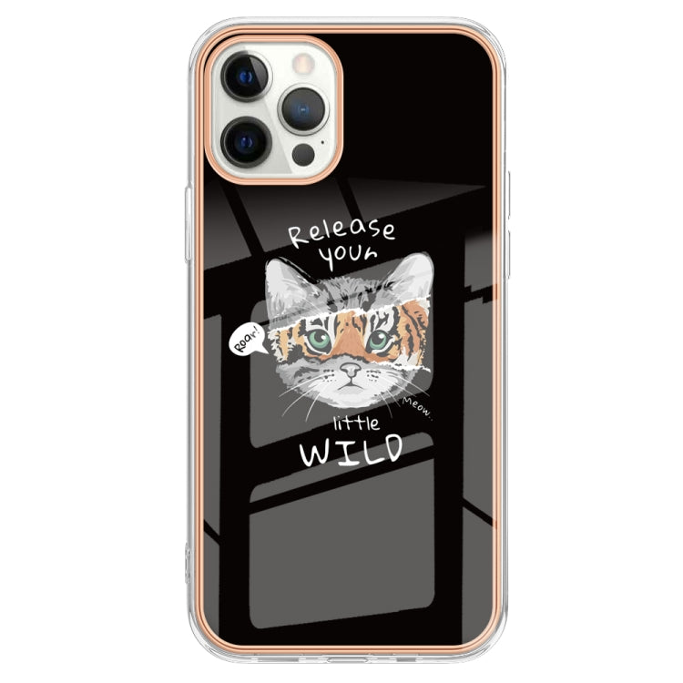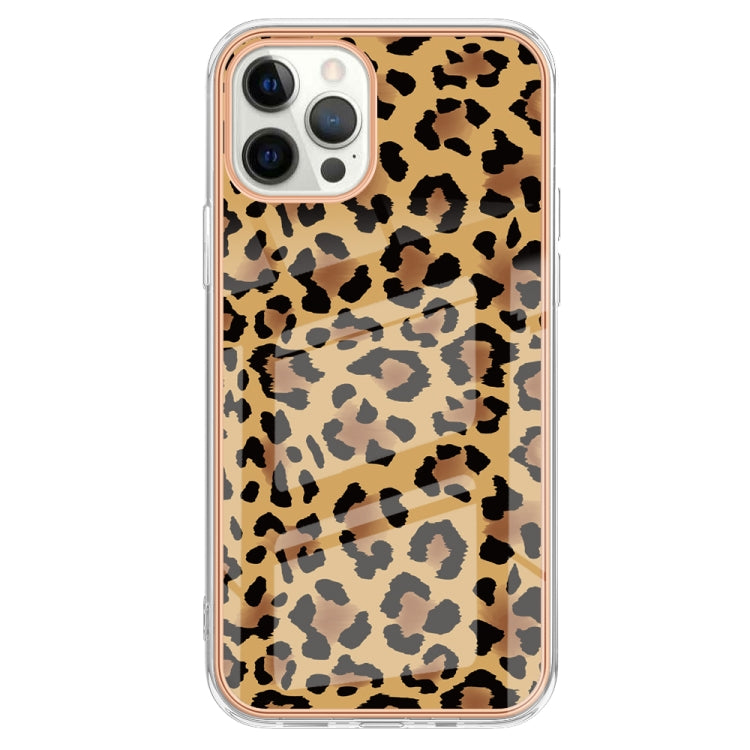 For iPhone 12 Pro Max Electroplated Marble Double-sided IMD Phone Case (Leopard Print)
