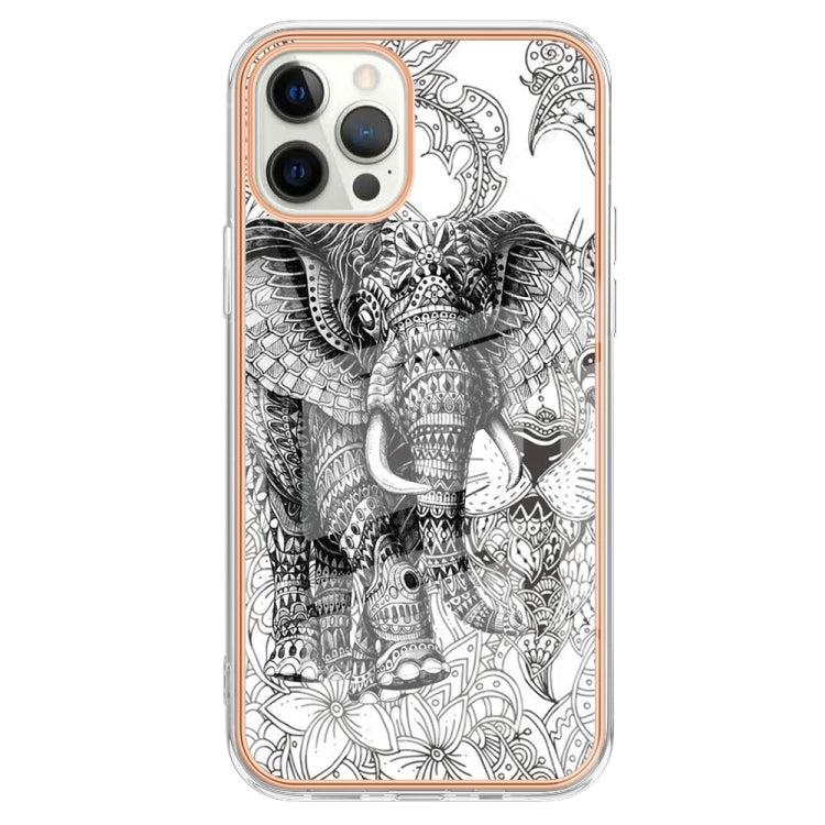 For iPhone 12 Pro Max Electroplating Marble Double-sided IMD Phone Case (Totem Elephant)