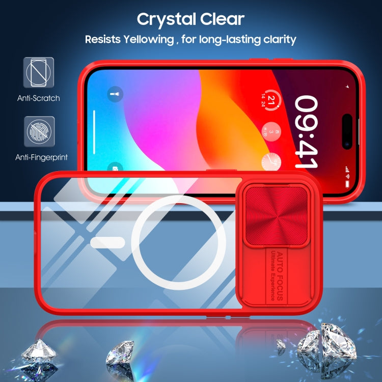 Funda para iPhone 12 Pro Max Cubierta Deslizante AcrĂlico Transparente PC TPU Magsafe (Rojo Chino)