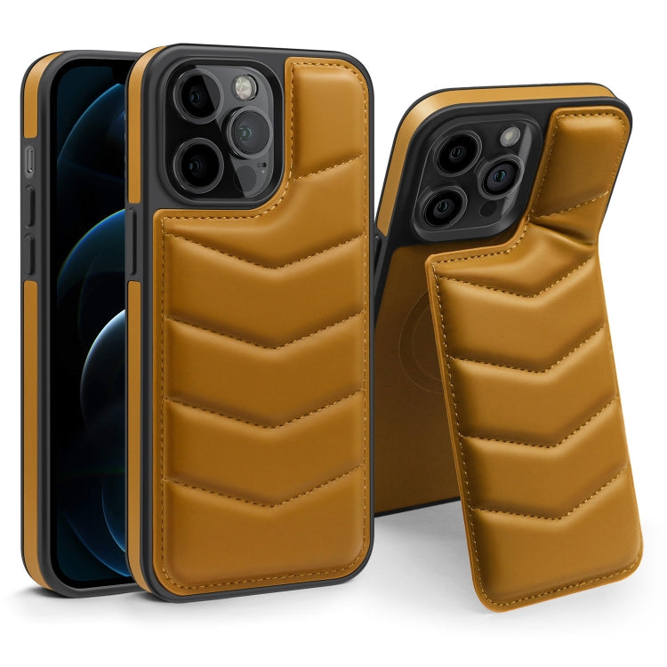 Funda para teléfono iPhone 12 Pro Max con tarjetero diseño chaqueta de plumas y Magsafe (Marrón)
