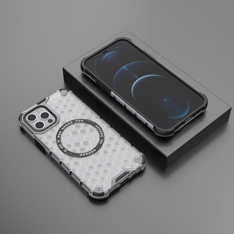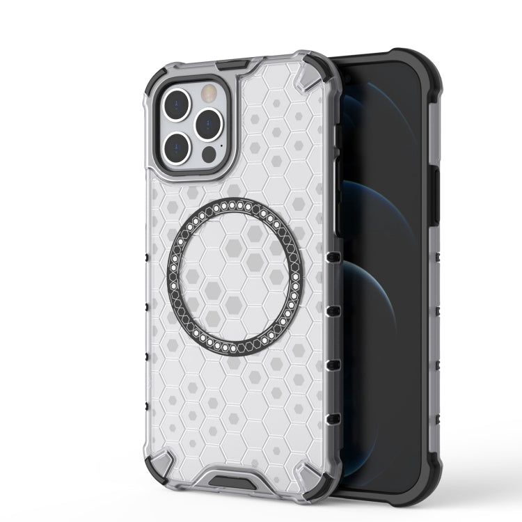 Funda para Teléfono iPhone 12 Pro Max Honeycomb Magnetic Ring a Prueba de Golpes (Blanco)