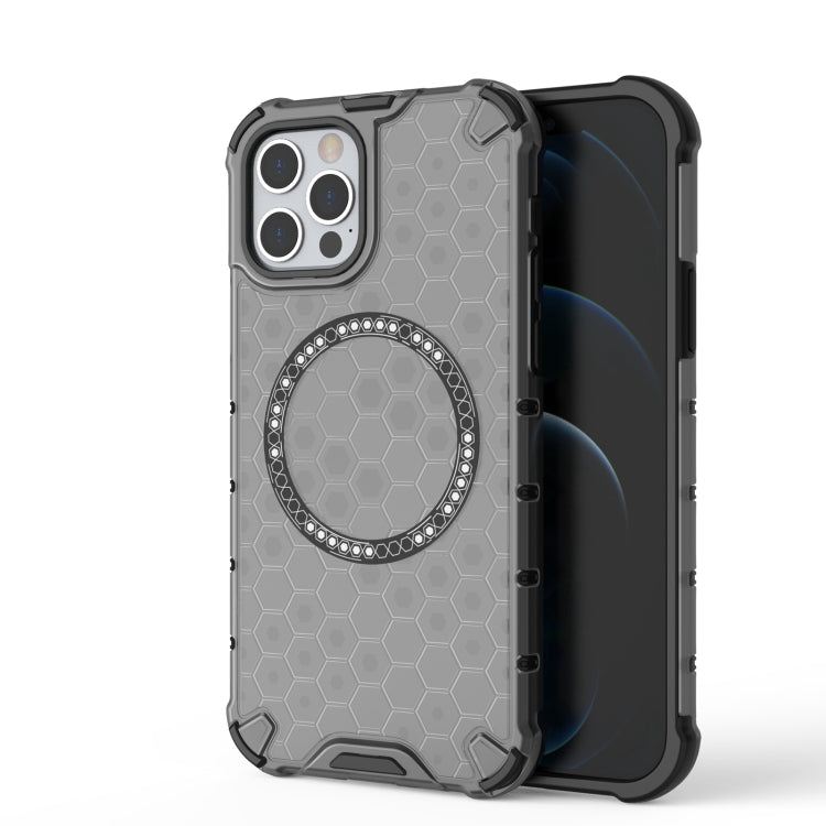 Funda para Teléfono iPhone 12 Pro Max Honeycomb Magnetic Ring a Prueba de Golpes (Negro)