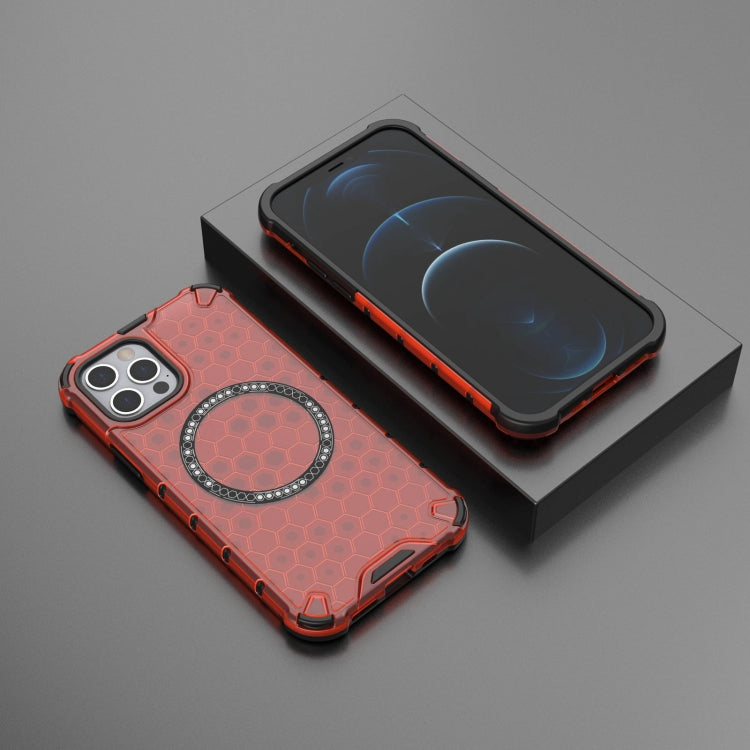 Funda para teléfono iPhone 12 Pro Max Honeycomb Magnetic Ring a prueba de golpes (Rojo)