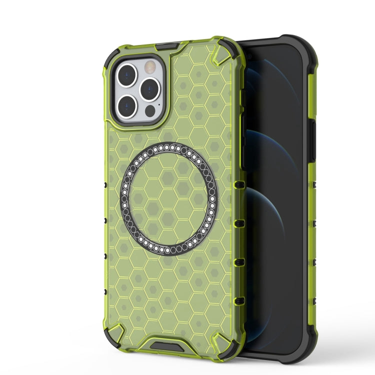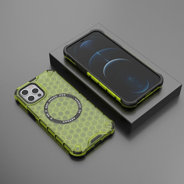 Funda para teléfono iPhone 12 Pro Max Honeycomb Magnetic Ring a prueba de golpes (Verde)