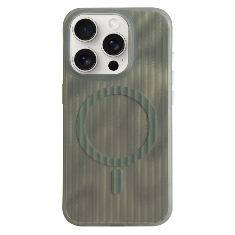 Funda Magnética para Teléfono iPhone 12 Pro Max Magsafe Sensación de Piel a Rayas (Verde)