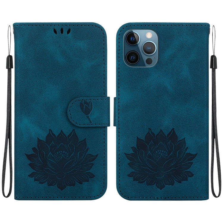 Funda para iPhone 12 Pro Max Cuero con Relieve de Loto (Azul Oscuro)