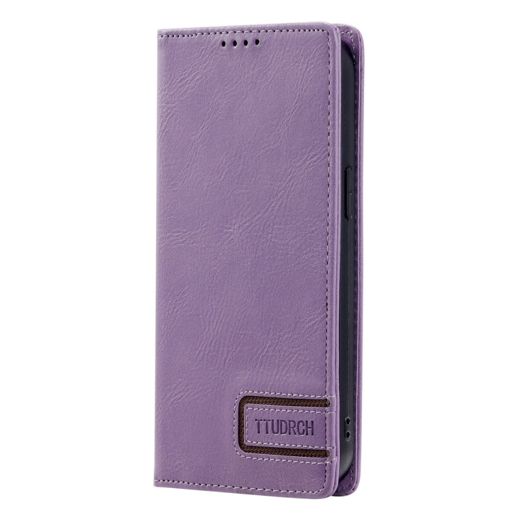 Funda de teléfono Ttudrch para iPhone 12 Pro Max con Rfid, cuero magnético y textura retro (Púrpura)