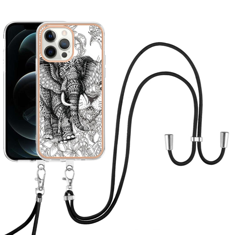 For iPhone 12 Pro Max Double-sided Electroplating IMD Phone Case with Lanyard (Totem Elephant)