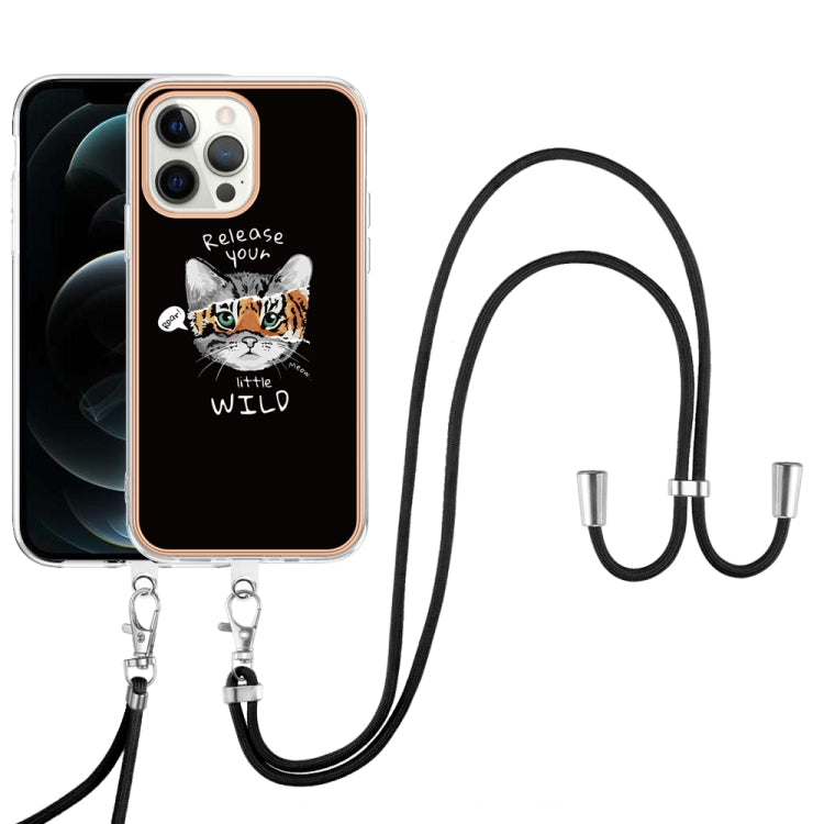 For iPhone 12 Pro Max Double-sided Electroplating IMD Phone Case with Lanyard (Natural Growth)