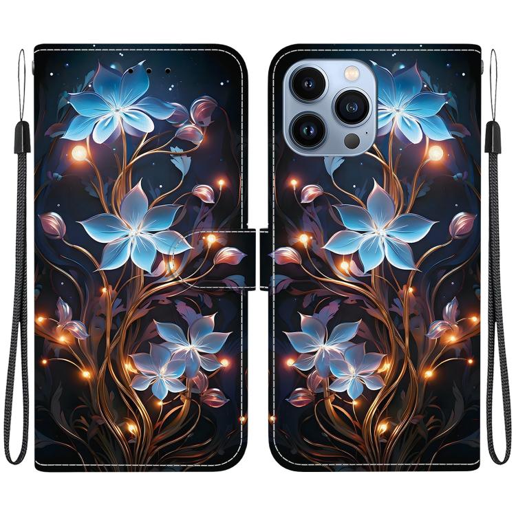 Funda de Cuero iPhone 13 Pro Dibujo Colores Textura Cristal (Flor de Linterna Pequeña)