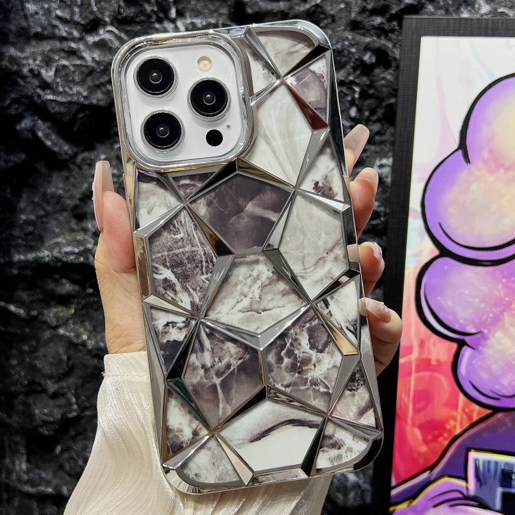 For iPhone 13 Pro Water Cube Marble Electroplating TPU Phone Case(Silver)