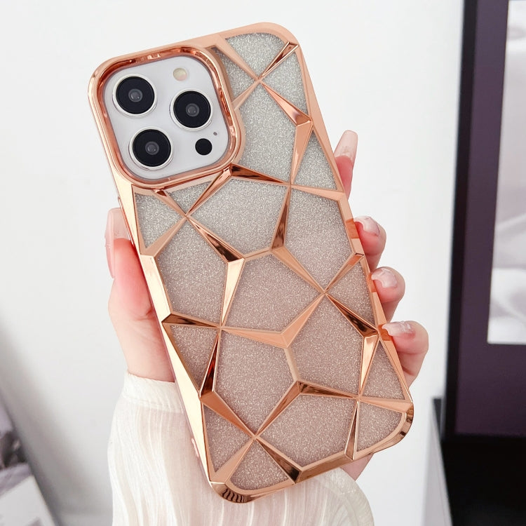 Estuche para teléfono TPU iPhone 13 Pro Galvanoplastia Cubo de Agua Brillo Degradado (Oro Rosa)