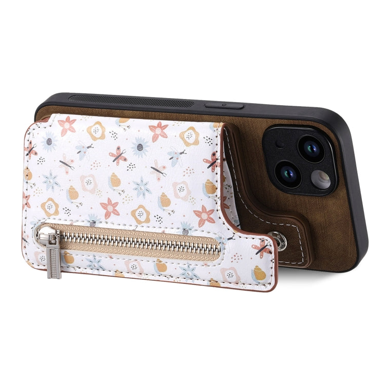 Funda Trasera para iPhone 13 Pro con Billetera y Cremallera Pintada Retro (Púrpura)
