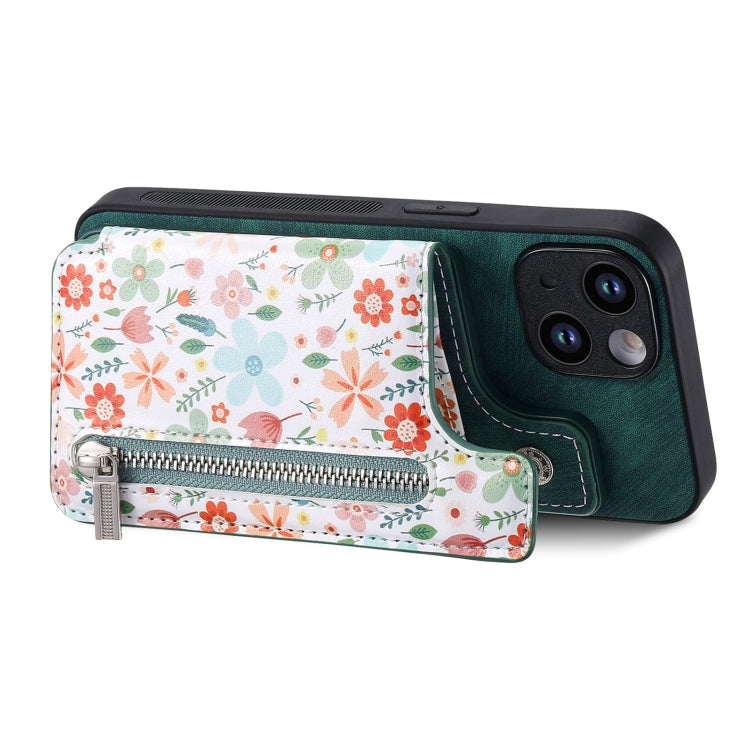 Estuche para Teléfono iPhone 13 Pro con Billetera y Cremallera Pintada Retro (Verde)