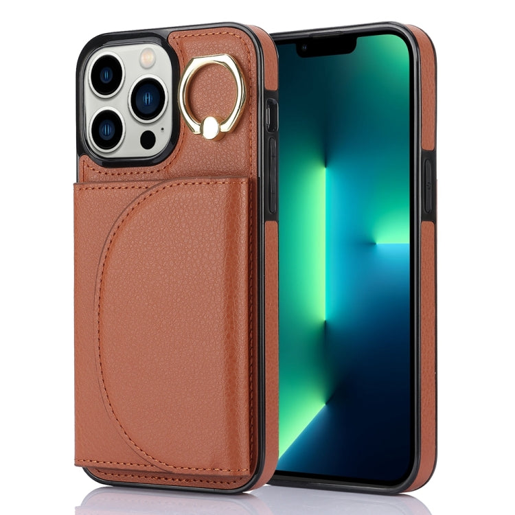 For iPhone 13 Pro YM006 Leather Feeling Card Holder Ring Holder Phone Case (Brown)
