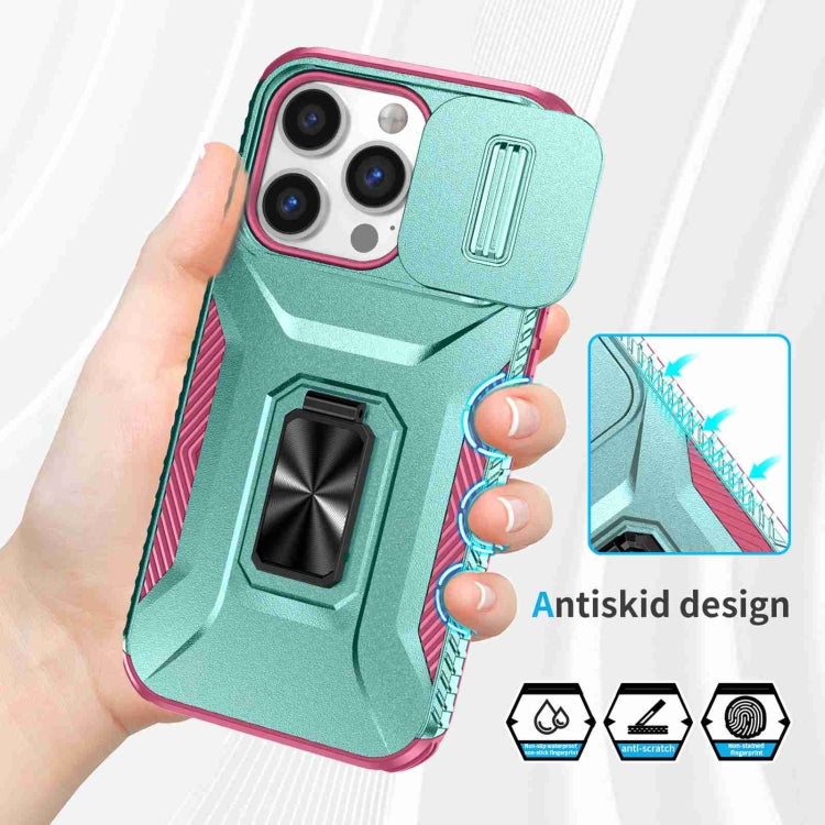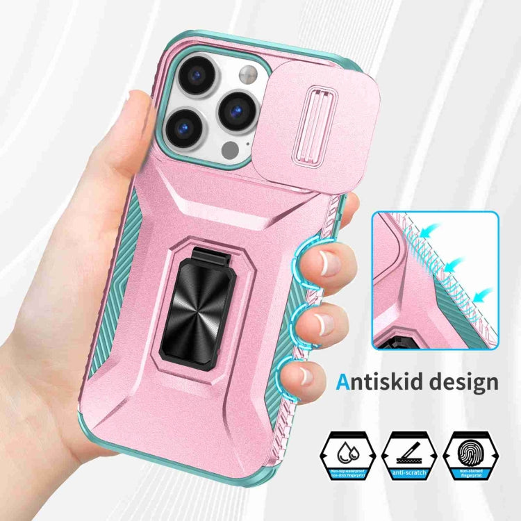 Estuche para teléfono iPhone 13 Pro soporte deslizante para levas (Rosa + Gris Verde)