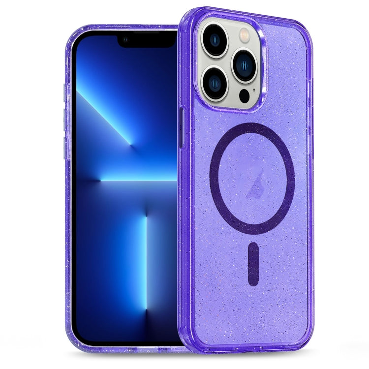 For iPhone 13 Pro Glitter Powder TPU PC Hybrid MagSafe Phone Case (Purple)
