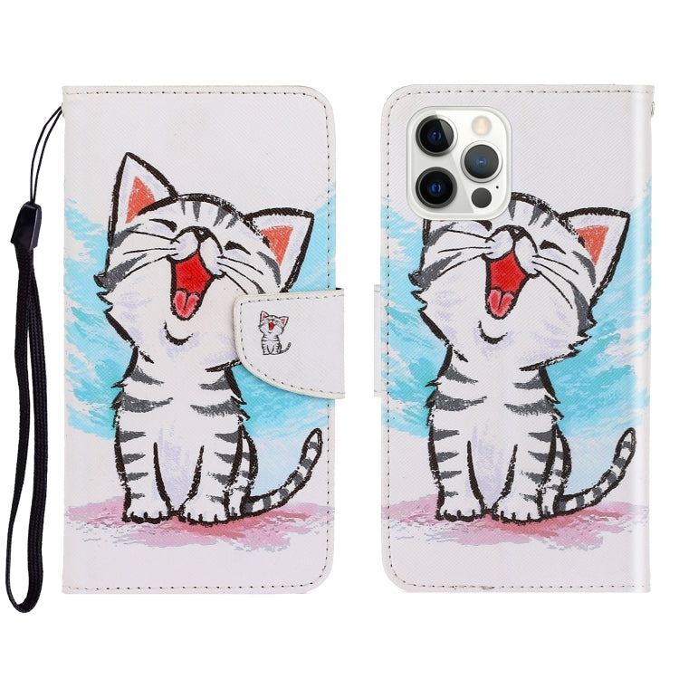 Funda de Cuero Horizontal iPhone 13 Pro Dibujo 3D Gato de la Chaqueta Abajo