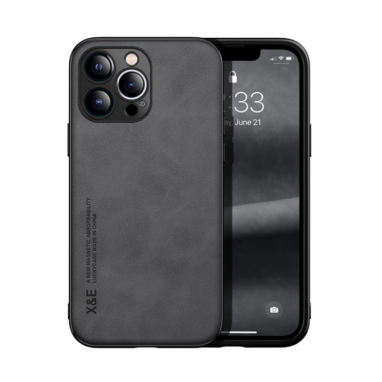 Funda magnética de cuero para teléfono iPhone 13 Pro Skin Feel (Gris oscuro)