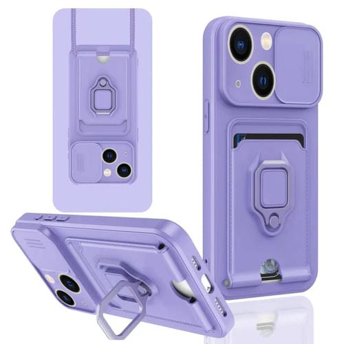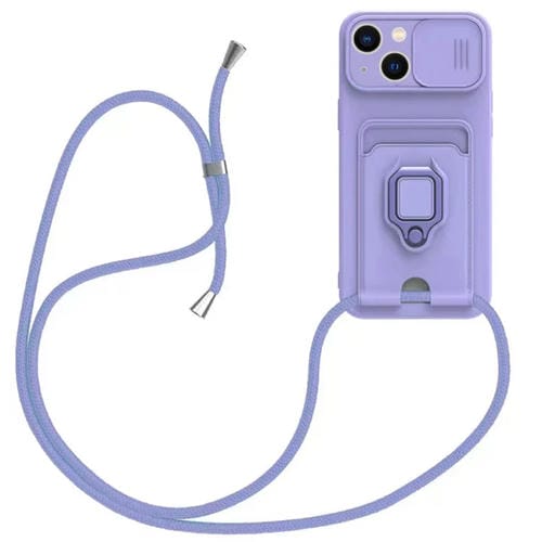 Funda de Silicona para iPhone 13 con Soporte Magnético para Tarjeta y Camshield (Púrpura Claro)