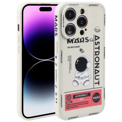 Funda de teléfono iPhone 14 Pro Max Patrón Astronauta Borde Recto Silicona (Blanco)