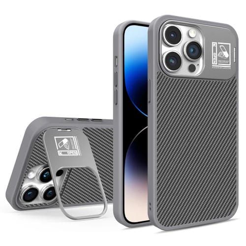 Funda para Teléfono Fibra de Carbono con Soporte Magsafe para iPhone 14 Pro Max (Gris)