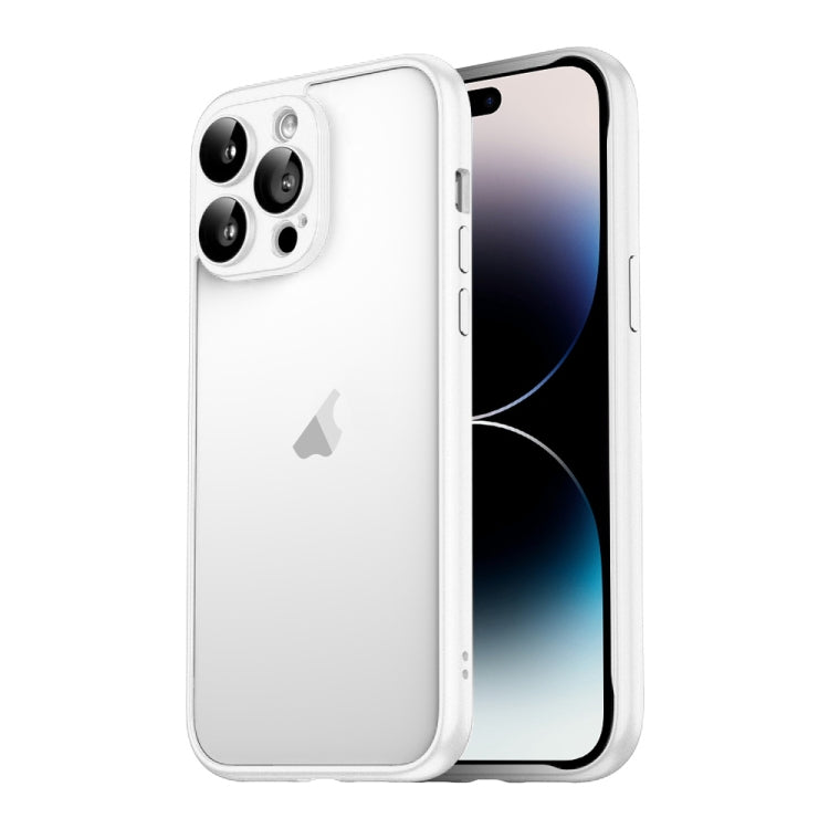 Funda para iPhone 14 Pro Max Macaron PC Marco de Borde Puro con Película de Vidrio para Lentes (Blanco)
