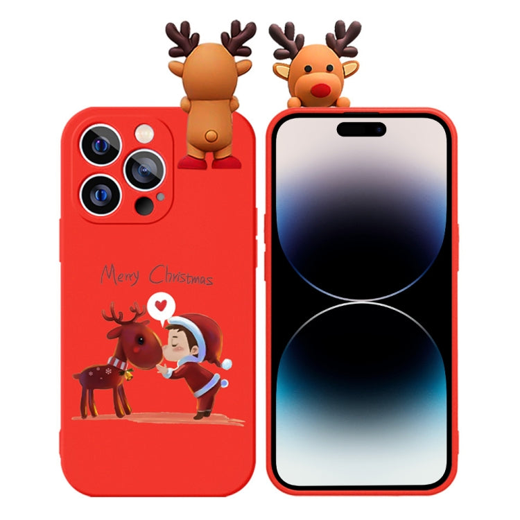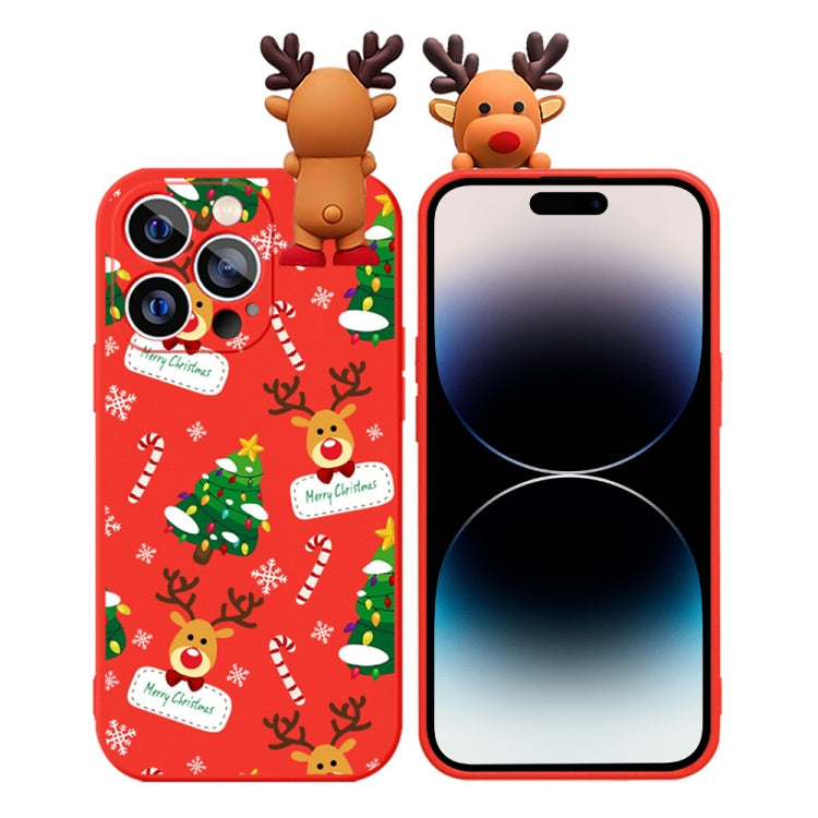 Funda para Teléfono TPU iPhone 14 Pro Max Muñeco En Relieve Ciervo Dibujo Coloreado (Árbol de Navidad)