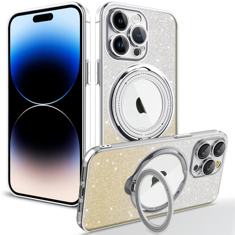 Estuche para Teléfono TPU iPhone 14 Pro Max Rotation Magsafe Holder con Brillo Degradado (Dorado)