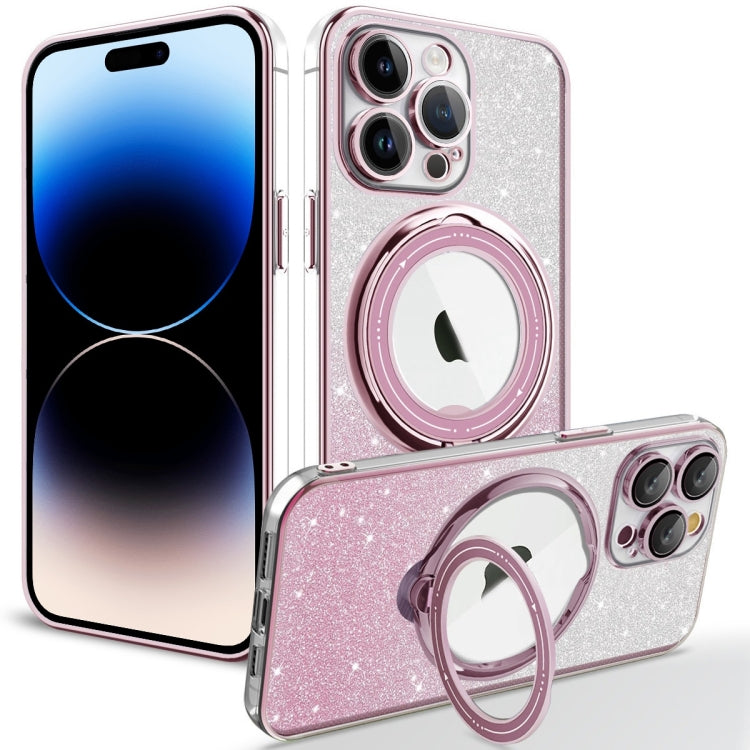 Estuche para Teléfono TPU iPhone 14 Pro Max Rotation Magsafe Holder con Brillo Degradado (Rosa)