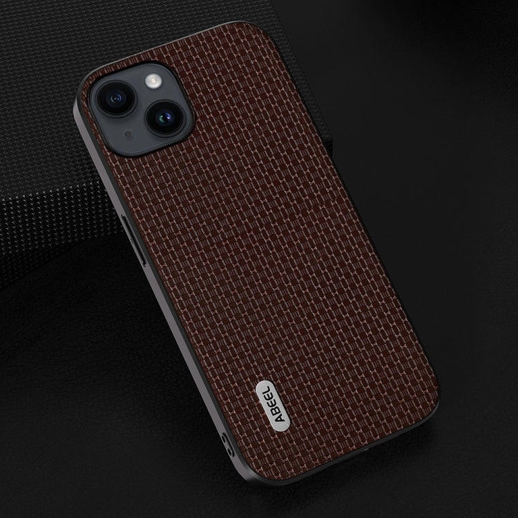 Funda de teléfono Abeel para iPhone 14 con borde negro de cuero genuino (Café)