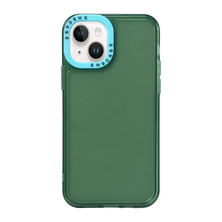 For iPhone 14 Color Contrast Lens Frame Transparent TPU Phone Case (Clear + Green)