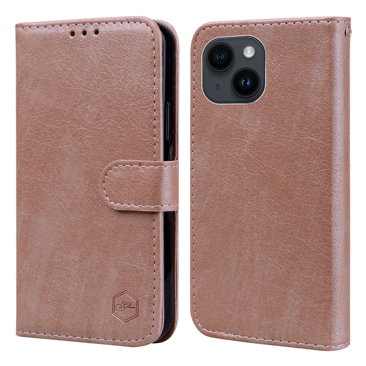 Funda para Teléfono iPhone 14 Sensación de Piel Textura de Cuero Aceitoso Pu + TPU (Champán)