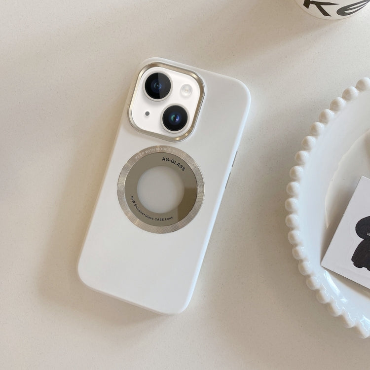 Funda Magnética de Silicona para iPhone 14 con Marco de Metal (Blanco)