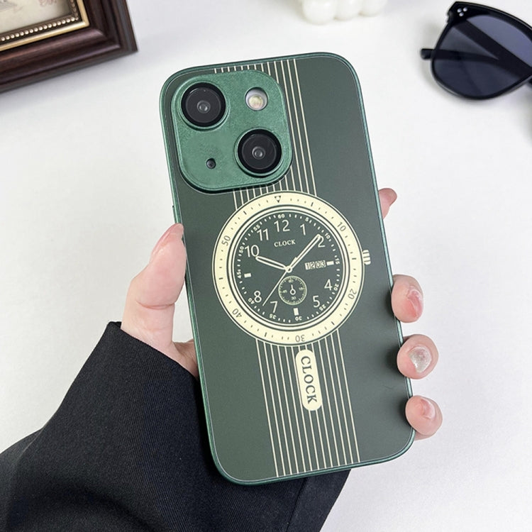 Estuche para Teléfono iPhone 14 con Protección de Lente Magnética y Patrón de Reloj (Verde)